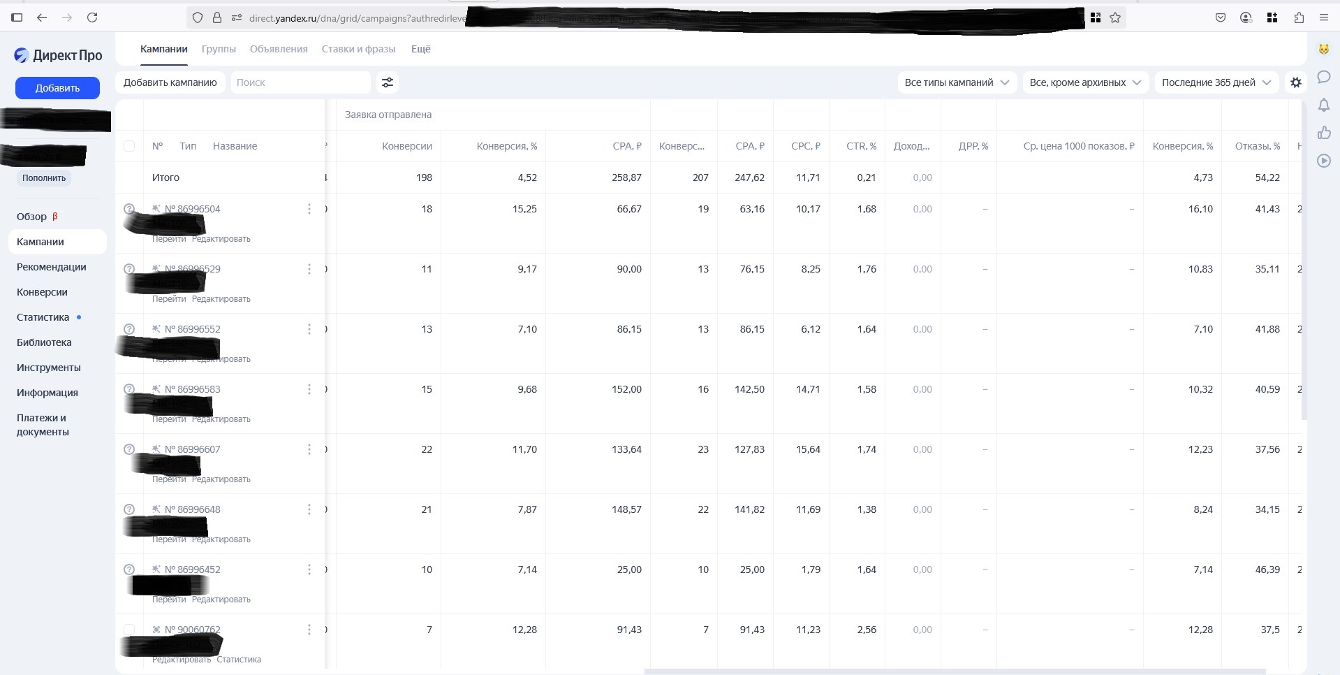 Кейс выбран заурядный, не примечательный ни чем, пожалуй, кроме цены - 250 рублей за лид без ндс. Для потолков это цена ниже средней, обычно выходит дороже. Город миллионник, самый обычный клиент без каких-то особых запросов, сайт – простой лендинг без квиза. На этом аккаунте настроен наш стандартный набор рекламных кампаний: Мастер Кампаний, РСЯ, и Поиск с оплатой за конверсии, но с РСЯ-шной ставкой. Хинт: такие рк приносят немного заявок (до 10%), поэтому погоды не делают. Зато позволяют получать горячие поисковые лиды по халявной РСЯ-шной цене.
