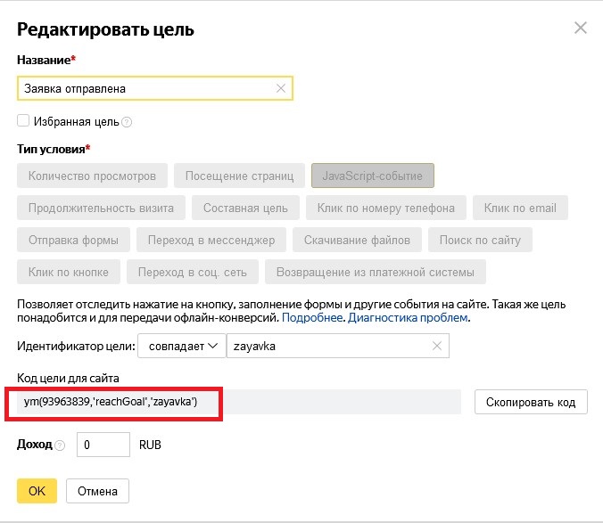 Поэтому никогда не используйте автоматические цели Яндекс.Метрики. А настраивайте две самые надежные цели: посещение URL Страницы благодарности и JavaScript-событие Заявка отправлена. URL копируете в адресной строке Страницы благодарности вашего сайта.
